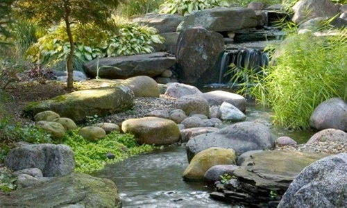 A Pondless Waterfall is simply a re-circulating waterfall or stream without the presence of a pond. Pondless waterfalls work by pumping water contained in a large, in-ground reservoir up and through the Waterfall Spillway, allowing the water to flow back down into the reservoir. This simple recirculation system requires very little maintenance, is easy to install, and ideal for families with young children or pets that love to play in water.